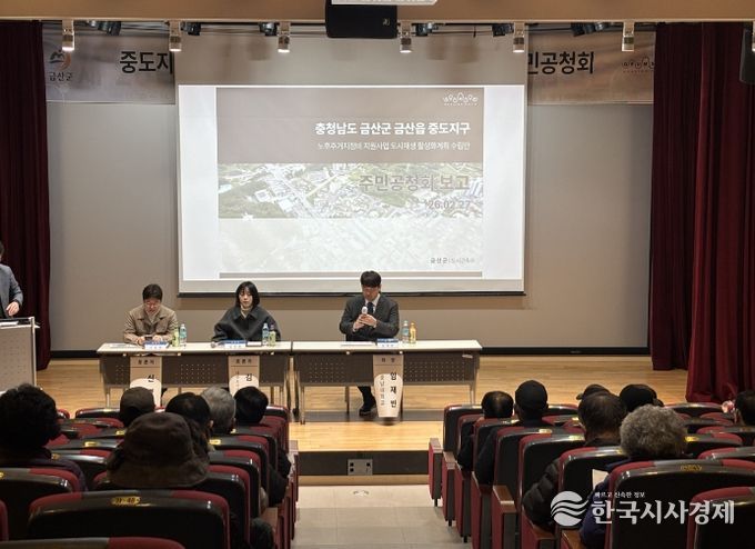 한국시사경제 김태훈 기자 | 금산군은 국토부의 노후주거지정비 지원사업 공모 신청을 위해 2월 27일 금산읍 소재 청산회관에서 금산읍 중도지구 노후주거지정비 지원사업 공청회를 개최했다.