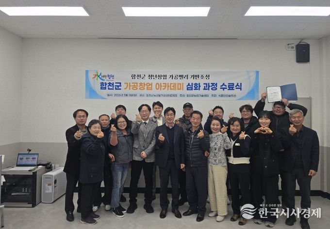 한국시사경제 노승선 기자 | 합천군은 3월 3일 먹거리통합지원센터 회의실에서 2025년 농산물가공창업 아카데미 교육 심화과정 수료식을 개최했다.