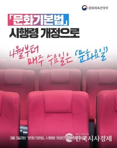 한국시사경제 문화팀 | 「문화기본법」 시행령 개정으로 4월부터 매주 수요일은 '문화요일'