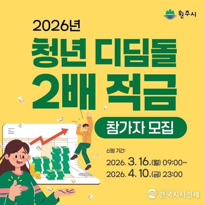 한국시사경제 권충언 기자 | 원주시는 청년 근로자의 경제적 자립과 자산 형성 기회를 제공하고, 기업의 고용안정과 장기 재직을 촉진하기 위해 ‘2026년 청년 디딤돌 2배 적금’ 신청자를 모집한다.