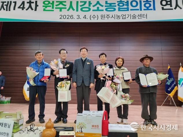 이날 원주시강소농협의회 제5대 회장으로 이학원 신임 회장이 취임했다. 또한 조경일 전임 회장을 비롯한 임원에게 시장 공로패가 수여됐으며, 우수회원 7명을 선발해 도지사 표창장 등을 전수했다.