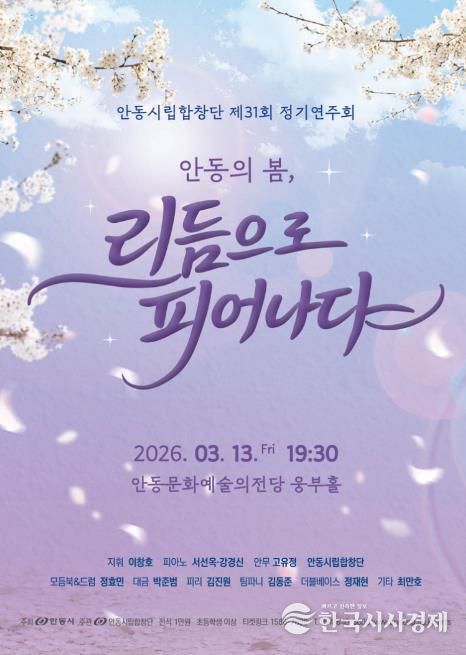 한국시사경제 경북취재본부 | 안동시를 대표하는 전문예술단체인 안동시립합창단이 오는 3월 13일 오후 7시 30분 안동문화예술의전당 웅부홀에서 제31회 정기연주회 ‘안동의 봄, 리듬으로 피어나다’를 개최한다.