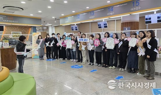 캠페인 참여자들은 친절한 방문민원 응대 자세를 갖추기 위한 ‘반가운 마음으로 첫인사’라는 주제로 ▲친절한 미소로 맞이하기 ▲상냥한 말투로 인사하기 ▲적극적인 자세로 눈맞추기 ▲공손한 태도로 경청하기 ▲문의사항 반복확인하기 ▲신속하고 공정한 업무 처리를 다짐했다.