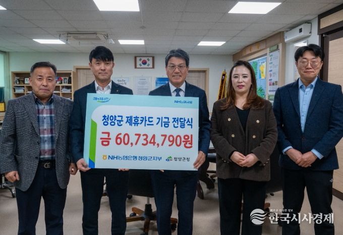 한국시사경제 충남취재본부 | 청양군은 NH농협은행 청양군지부(지부장 이동수)로부터 지난해 제휴카드 사용으로 발생한 적립 기금 6,073만 원을 전달받았다고 6일 밝혔다.