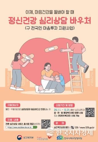 울주군 관계자는 “정신건강 심리상담 바우처 사업을 통해 울주군민에게 전문적인 심리상담을 제공해 정서적 어려움을 극복할 수 있도록 지원하겠다”고 밝혔다.