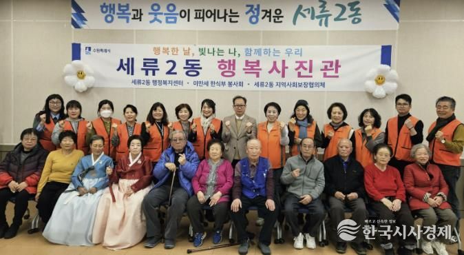 한국시사경제 사회팀 | 지난 4일, 권선구 세류2동은 지역사회보장협의체, 이만세 한식부 봉사회와 함께 관내 취약계층 어르신 11명을 위한 ‘행복사진관’을 진행했다.