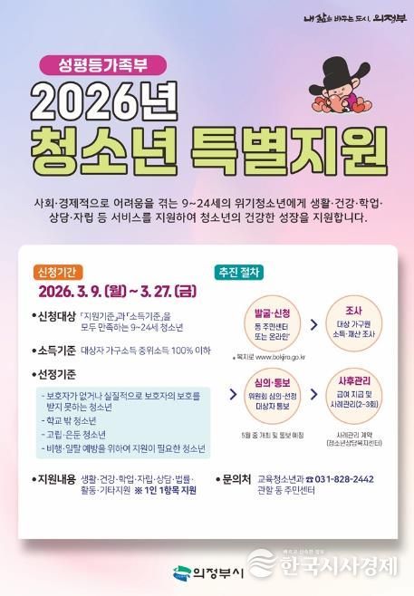 한국시사경제 경기북부취재본부 | 의정부시는 3월 9일부터 27일까지 ‘2026년 청소년 특별지원’ 사업 대상자를 모집한다.