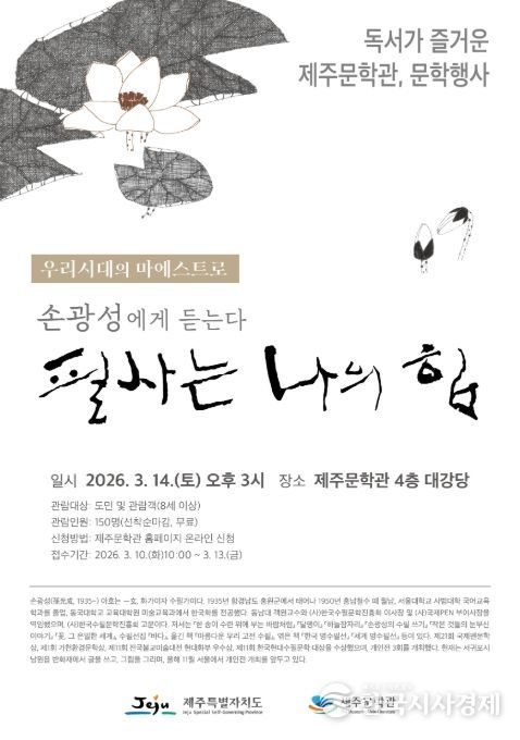 강연은 도민 등 150여 명을 대상으로 무료로 진행된다. 사전 신청은 10일부터 13일까지 제주문학관 누리집 교육·프로그램 신청 메뉴에서 할 수 있다.