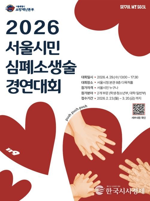 한국시사경제 오영주 기자 | 서울특별시 소방재난본부는 시민의 응급상황 대응 능력을 높이고 생명존중 문화를 확산하기 위해 '2026 서울시민 심폐소생술 경연대회' 참가팀을 3월 20일까지 모집한다고 밝혔다.