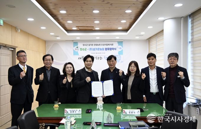 이날 협약식에는 최훈식 장수군수를 비롯해 정현수 ㈜설가온농원 대표, ㈜광화문아띠 관계자 등 10여 명이 참석한 가운데 진행됐다.