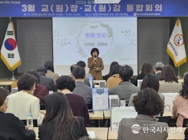 한국시사경제 경기취재본부 | 경기도광명교육지원청은 3월 5일, 광명교육지원청 3층 해오름실에서 2026 해오름 광명교육과 경기미래교육 구현을 위한 ‘2026년 3월 교(원)장, 교(원)감 통합회의’를 운영했다. 이번 통합회의는 학년 초 학교와 교육지원청, 도교육청 간의 협력을 강화하고, 학교 중심의 교육정책, 미래장학, 교육과정운영의 선순환 체제를 통해 학교 중심 행정 지원의 기틀을 마련하고자 진행됐다.