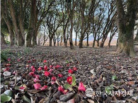 한국시사경제 전남취재본부 | 장흥군 묵촌마을에 조성된 동백림에 동백꽃이 만개했다.