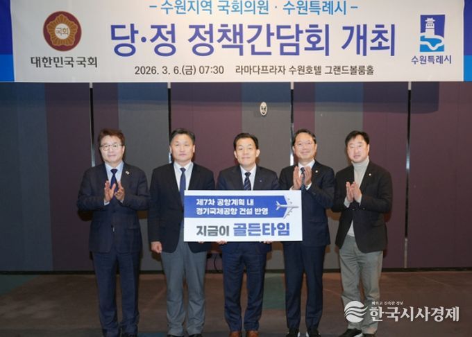 한국시사경제 기동취재팀 | 이재준 수원특례시장은 6일 라마다프라자 수원호텔에서 열린 지역 국회의원들과 당·정 정책간담회에서 “제7차 공항개발 종합계획에 ‘경기국제공항’ 건설 내용이 반영될 수 있도록, 경기도와 협의해 달라”고 요청했다.