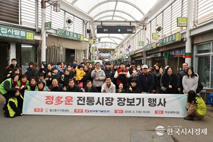 한국시사경제 울산취재본부 | 울산중구가족센터가 한국동서발전㈜의 후원을 바탕으로 3월 7일 오전 10시 학성새벽시장에서 저소득 가정과 함께하는 ‘정多운 전통시장 장보기 행사’를 진행했다.