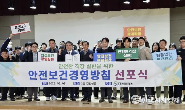 한국시사경제 사회팀 | 군포산업진흥원은 지난 9일 청사 3층 컨벤션홀에서 기관 임직원이 참석한 가운데 '2026년 안전보건경영 선포식'을 개최했다.