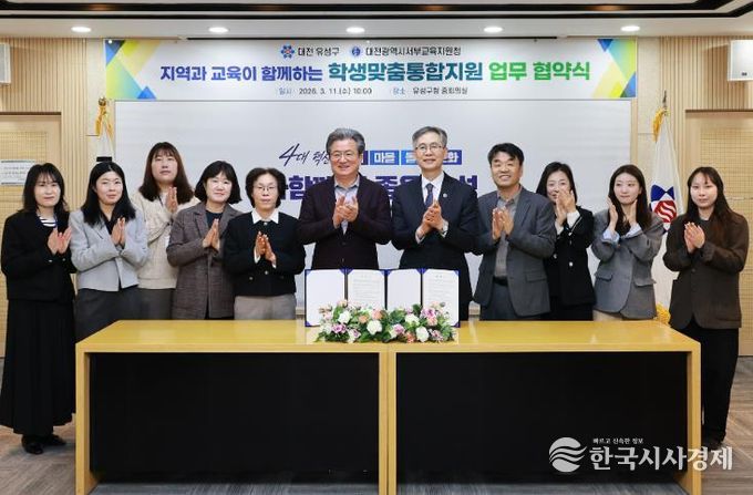 한국시사경제 대전취재본부 | 대전 유성구는 11일 유성구청 중회의실에서 대전서부교육지원청과 교육 취약 학생의 건강한 성장을 지원하기 위한 업무 협약을 체결했다.