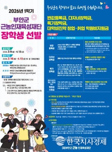 한국시사경제 김숙영 기자 | 부안군 근농인재육성재단은 2026년 1학기 장학생 신청 접수를 위해 각종 홍보자료를 준비하고 온라인 신청 시스템을 정비하는 등 장학생 선발 준비를 모두 마쳤다고 전했다.