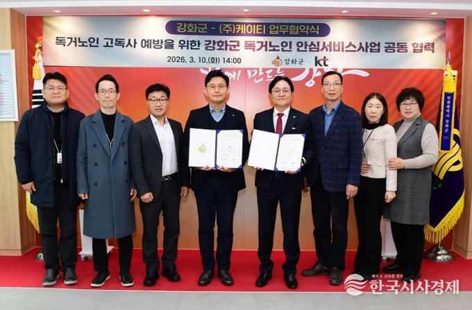 한국시사경제 사회팀 | 강화군은 지난 10일 KT와 독거노인 안심서비스 사업 추진을 위한 업무협약을 체결했다.