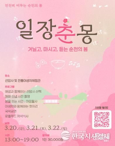 한국시사경제 전남취재본부 | 순천시는 봄꽃이 피어나는 시기에 맞춰, 천년 고찰의 정취 속에서 휴식과 사색을 즐기는 프리미엄 감성 프로그램 ‘일장춘몽(一場春夢)’을 운영하고 참가자를 모집한다고 밝혔다.
