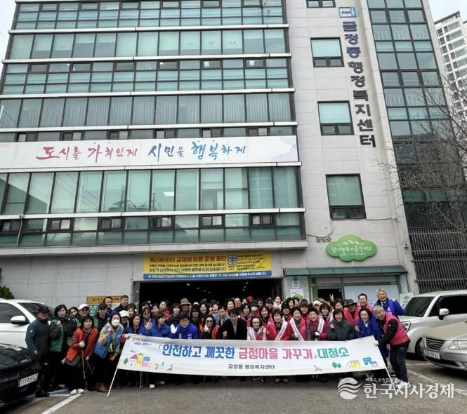 한국시사경제 사회팀 | 군포시 금정동에서는 지난 3월 11일 6개 직능단체 및 주민 등 80여명이 함께 참여한 가운데 “깨끗한 금정마을 가꾸기” 대청소 행사를 진행했다.