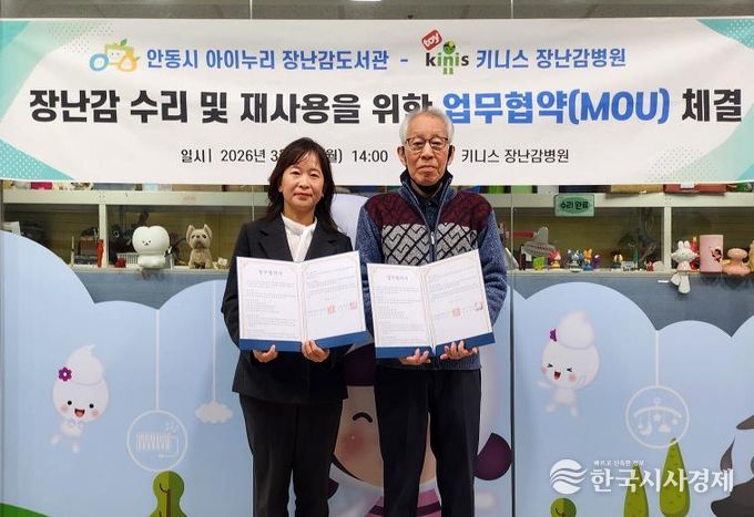 한국시사경제 경북취재본부 | 안동시는 아이누리장난감도서관과 키니스 장난감병원이 장난감 수리와 재사용 문화 확산을 위한 업무협약(MOU)을 체결했다고 밝혔다.