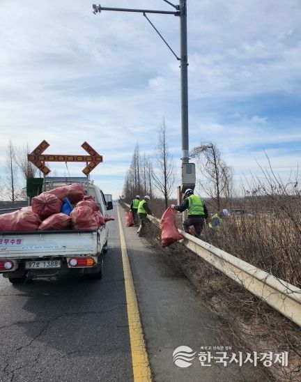 시는 지난 2월 26일 시작하여 3월 15일까지 관내 주요 국도 구간을 대상으로 환경 정비를 실시 중이며, 현재 교차로 및 비탈면 등에서 생활 쓰레기와 불법 투기 폐기물 등 1톤 마대 80여 개 분량의 폐기물을 수거하는 등 국도변 청소 작업을 하고 있다.