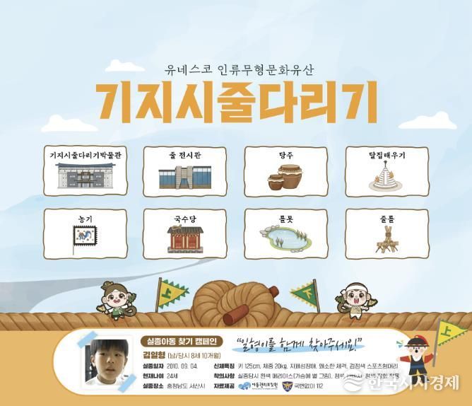 한국시사경제 충남취재본부 | 당진시가 전국 최초로 지역의 문화유산 홍보물에 실종아동 찾기 캠페인을 포함해 눈길을 끌고 있다.