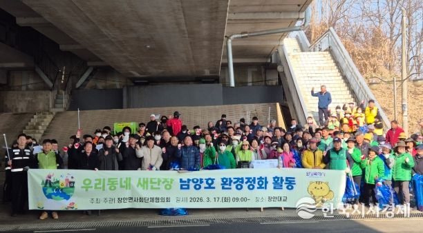 한국시사경제 사회팀 | 화성특례시 만세구 장안면은 3월 17일 남양호 일원에서 장안면 사회단체협의회 주최로 ‘2026년 남양호 환경정화 활동’을 실시했다.