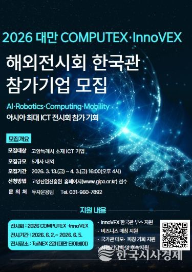 한국시사경제 경기북부취재본부 | 고양산업진흥원이 ‘2026 대만 COMPUTEX‧InnoVEX ’참가 기업을 모집한다고 18일 밝혔다.