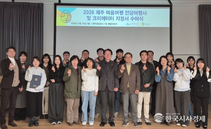 한국시사경제 문화팀 | 제주특별자치도와 제주관광공사(사장 고승철)은 3월 16일 월요일, 제주 웰컴센터에서 ‘2026 제주 마을 여행 전담 여행사 및 크리에이터’ 지정서 수여식을 개최하고 총 11개소를 공식 지정했다고 17일 밝혔다.