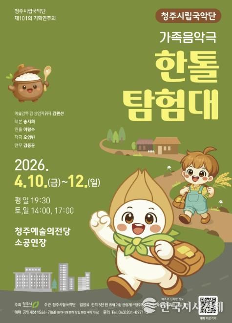 한국시사경제 김태훈 기자 | 청주시립국악단은 4월 10일부터 12일까지 3일간 청주예술의전당 소공연장에서 제101회 기획연주회 가족 음악극 ‘한톨탐험대’를 개최한다고 19일 밝혔다.