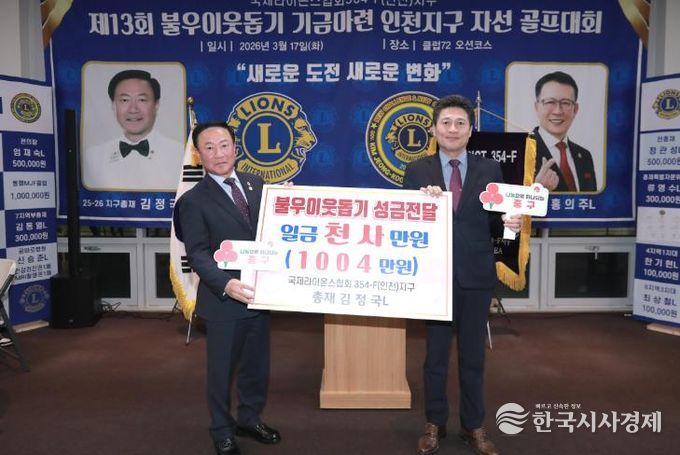 한국시사경제 윤광희 기자 | 인천시 중구는 최근 ‘국제라이온스협회 354-F(인천)지구’로부터 지역 내 복지 사각지대 해소와 취약계층 지원을 위한 현금 1,004만 원을 기탁받았다고 19일 밝혔다.