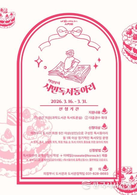 한국시사경제 경기북부취재본부 | 의정부시는 독서공동체의 자발적 참여를 촉진하고 독서 문화의 기반을 마련하기 위해 ‘2026년 시민 독서동아리’를 운영한다.