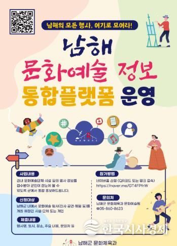 한국시사경제 경남취재본부 | 남해군은 관내 문화예술 행사 정보를 한곳에서 확인할 수 있는 ‘남해 문화예술 정보 통합플랫폼’을 구축하고 본격 운영한다고 밝혔다.