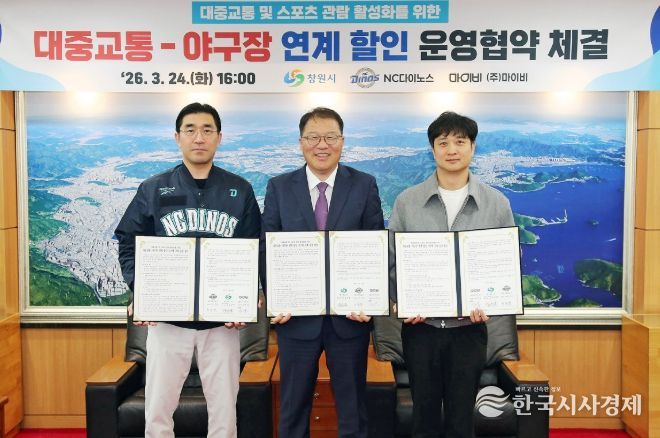 한국시사경제 노승선 기자 | 창원특례시와 NC 다이노스, ㈜마이비는 24일 창원시청에서 시내버스-야구장 연계 할인 서비스 제공을 위한 업무협약을 체결했다.