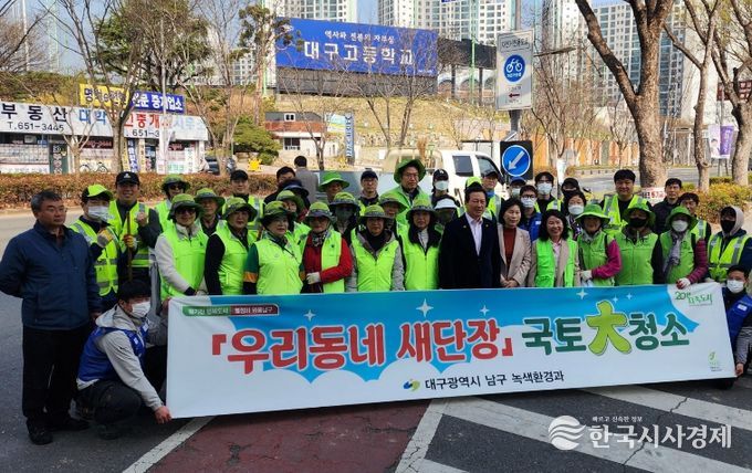 한국시사경제 사회팀 | 대구 남구는 지난 3월 18일부터 주민들이 활기찬 봄을 만끽할 수 있도록 중앙대로 화단과 무단투기 취약지를 집중 청소하는 2026년 새봄맞이 국토대청소 및 우리동네 새단장에 나섰다.