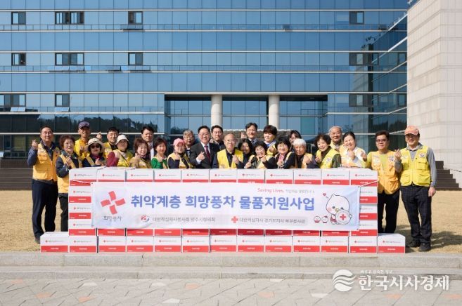 한국시사경제 경기북부취재본부 | 대한적십자사봉사회 양주시협의회(회장 정진수)는 지난 25일 시청 원형광장 앞에서 ‘희망풍차 물품 전달식’을 개최했다.