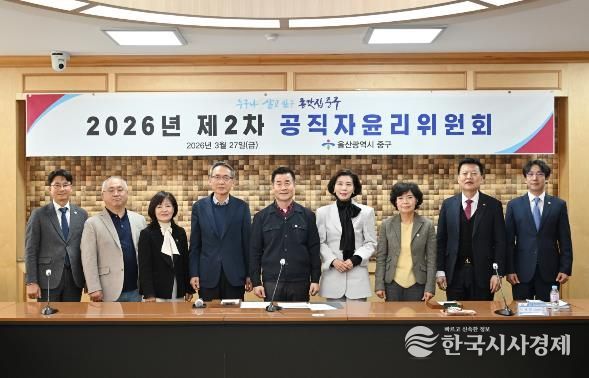 한국시사경제 울산취재본부 | 울산 중구가 3월 27일 오후 2시 중구청 소회의실에서 2026년 제2차 공직자윤리위원회를 개최했다.
