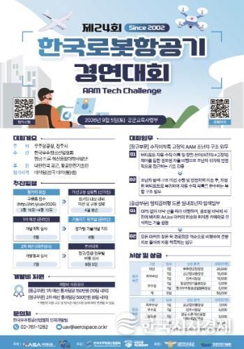 한국시사경제 윤광희 기자 | 진주시는 우주항공청과 공동 주최하는 ‘제24회 한국로봇항공기 경연대회’의 참가팀 모집을 시작했다고 밝혔다.