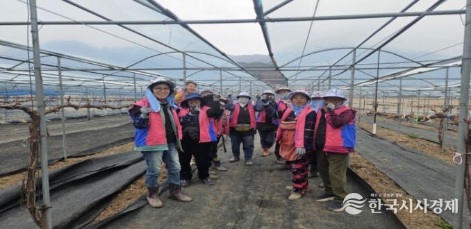 연합회는 최근 농장주 남편이 담낭 제거 수술을 받아 농작업에 어려움을 겪고 있는 김미숙 회원의 포도과원을 찾아 일손 돕기 봉사활동을 펼쳤다.