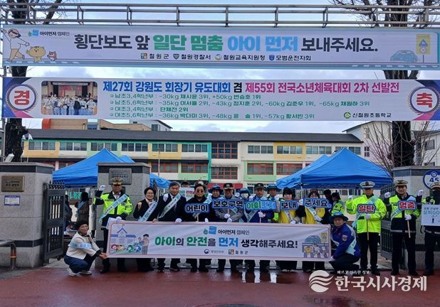 캠페인에는 철원군을 비롯해 철원경찰서, 철원교육지원청, 신철원초등학교, 모범운전자회, 녹색어머니회 등 유관기관 및 단체 관계자 총 50여 명이 함께 참여하여, 민관합동으로 어린이 안전 확보에 힘을 모았다.