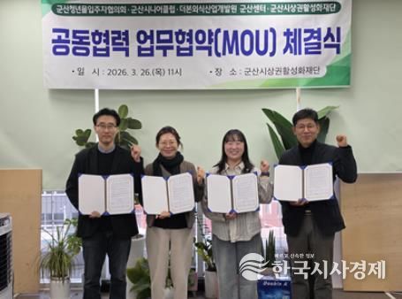 군산시상권활성화재단은 군산 청년몰입주자협의회, 더본외식산업개발원 군산센터, 군산시니어클럽과 함께 ‘청년몰 활성화를 위한 업무협약(MOU)’을 체결하고, 청년몰 경쟁력 강화 및 방문객 유입 확대를 위한 공동 협력에 나선다고 밝혔다.