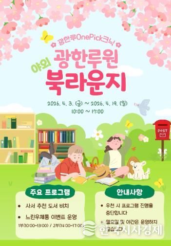 한국시사경제 전북취재본부 | 남원어울림도서관은 오는 4월 3일부터 19일까지 광한루원 정문 잔디마당에서 2026년 상반기 '광한루원 야외 북라운지'를 운영한다고 밝혔다.