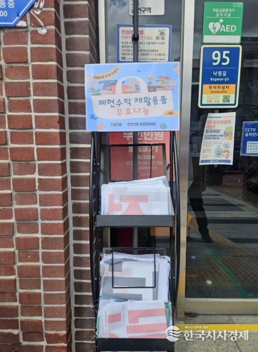 제작된 폐현수막 마대자루는 안성1동 행정복지센터 입구에 비치되어 있으며, 센터를 방문하는 주민이라면 누구나 용도에 맞춰 자유롭게 가져가 사용할 수 있다.