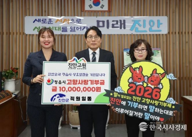 한국시사경제 김숙영 기자 | 진안군청과 정읍시청 직원들이 고향사랑기부제를 통해 상호 기부에 나서며 지역 상생 협력의 모범을 보였다.
