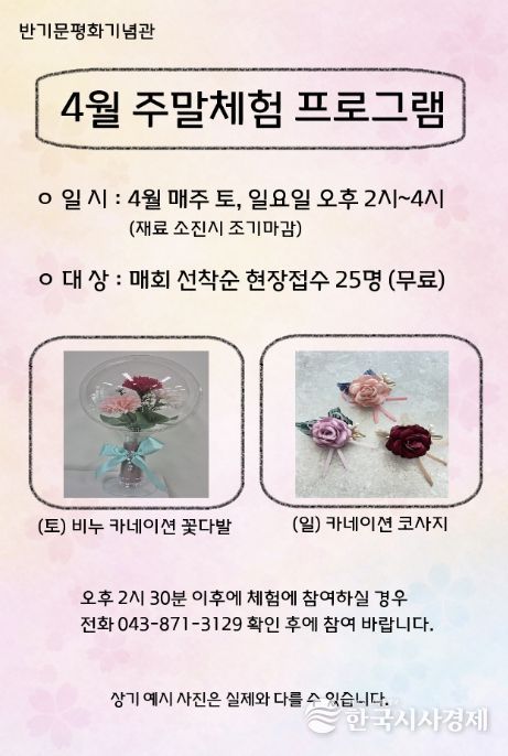 한국시사경제 오영주 기자 | 음성군 제8대 유엔사무총장 반기문 평화기념관에서는 관람객을 위한 4월 주말 무료 체험 프로그램을 운영한다.