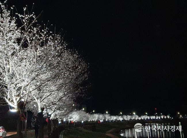 군은 단순한 조명 설치를 넘어 하천 주변 자연환경과 조화를 이루는 경관 연출에 중점을 두고 사업을 진행했다. 산책로 일대에는 연분홍과 화이트 계열 조명을 활용해 벚나무 경관을 정비했으며, 이를 통해 야간에도 밝고 안정적인 보행 여건을 마련했다.