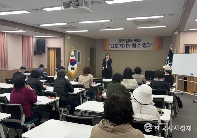 한국시사경제 권충언 기자 | 경산시립장산도서관에서 운영하는 문학 강좌 '나도 작가가 될 수 있다' 제8기가 1일 개강했다. 본 강좌는 문학에 관심 있는 시민들을 대상으로 12주간 운영한다. 총 55명의 수강생이 참여하며, 매주 수요일에는 시 강의, 목요일에는 수필 강의가 각각 오전 10시부터 2시간씩 진행된다.