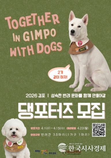 한국시사경제 경기북부취재본부 | 김포시는 올바르고 책임 있는 반려문화 확산을 이끌 ‘김포 댕포터즈’를 모집한다고 밝혔다.