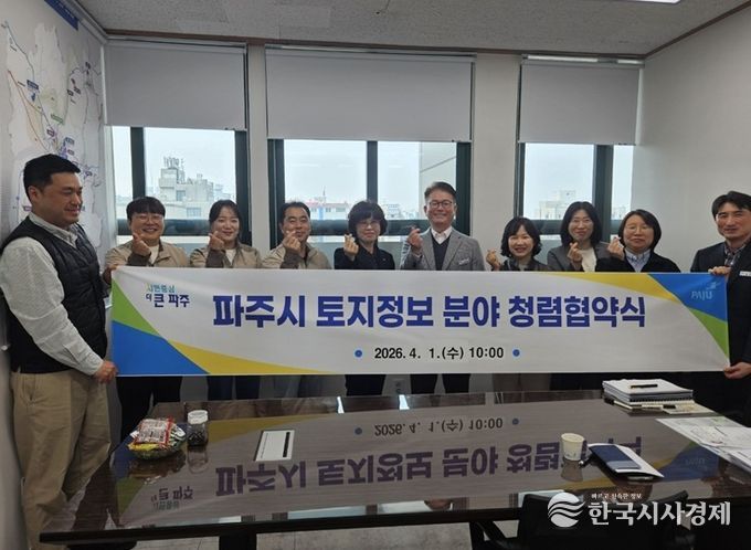한국시사경제 경기북부취재본부 | 파주시는 지난 1일 지적측량 수행기관인 한국국토정보공사 파주지사와 ‘토지정보 분야 청렴협의체’를 구성하는 내용으로 협약을 체결했다.